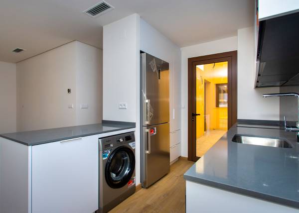 Het interieur van de appartementen en penthouses in Hondón de las Nieves is ontworpen om een gezellige en moderne ruimte te bieden. Elke woning beschikt over twee slaapkamers en twee badkamers, wat zorgt voor een perfecte balans tussen ruimte en privacy. De tegelvloeren voegen een vleugje elegantie toe en zijn gemakkelijk te onderhouden, terwijl het airconditioningsysteem het hele jaar door comfort garandeert. Bovendien biedt de video-intercom een extra niveau van veiligheid en gemak, waardoor bewoners efficiënt toegang tot hun huis kunnen beheren.