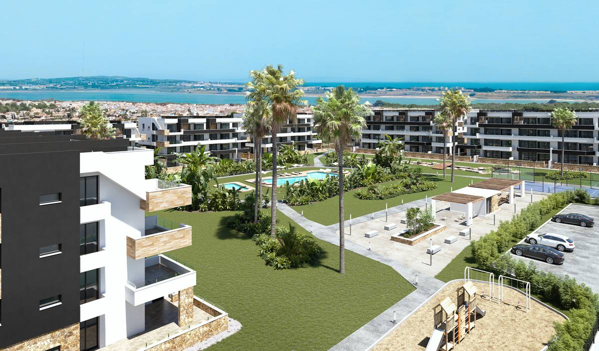Gelegen in de prachtige stad Torrevieja, biedt deze residentie een selectie van 80 eigendommen, waaronder appartementen, begane grond en penthouses. De locatie is ideaal voor degenen die willen genieten van de kust, aangezien het slechts 5 km van de zee ligt. De dichtstbijzijnde luchthaven ligt op 44 km afstand, wat de toegang voor bewoners en bezoekers vergemakkelijkt. Dit wooncomplex is perfect voor degenen die comfort en nabijheid van essentiële diensten willen combineren in een omgeving die rust en natuurlijke schoonheid biedt.