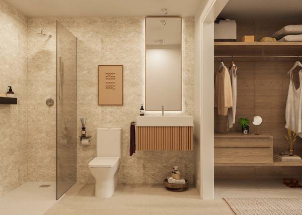 Het interieur van de woningen is ontworpen om comfort en functionaliteit te maximaliseren. De indelingsopties omvatten appartementen met 1, 2 en 3 slaapkamers, met 1 of 2 badkamers, die zich aanpassen aan verschillende levensstijlen. De integratie van domoticasystemen zorgt voor een efficiënte controle van de installaties, terwijl de airconditioning het hele jaar door een aangename sfeer garandeert. Ingebouwde kasten optimaliseren de opslagruimte, en de keramische vloeren geven een moderne en onderhoudsvriendelijke uitstraling.