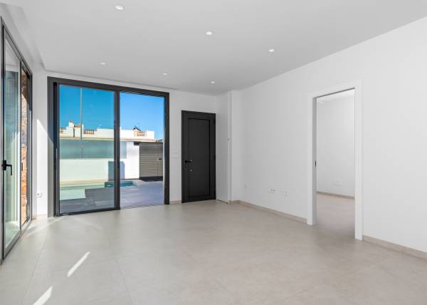 Het interieur van de bungalows is ontworpen met een focus op functionaliteit en comfort. Met een indeling die 3 slaapkamers en 2 badkamers omvat, is elke ruimte geoptimaliseerd voor comfort en privacy. De porseleinen tegelvloeren geven een moderne uitstraling en zijn gemakkelijk te onderhouden. De woningen zijn uitgerust met hoogwaardige apparatuur, airconditioning voor thermisch comfort het hele jaar door, en ingebouwde kasten die efficiënte en discrete opslag bieden. Deze elementen maken elk huis praktisch en gastvrij, ideaal voor het dagelijks leven.