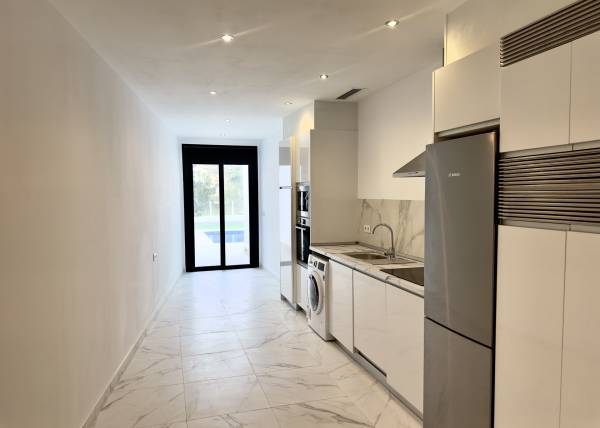 De interieurs van deze appartementen zijn ontworpen om maximaal comfort en functionaliteit te bieden. Met opties van drie of vier slaapkamers en drie of vier badkamers is elke unit uitgerust om gezinnen van verschillende groottes te huisvesten. Ingebouwde kasten in de slaapkamers bieden voldoende opbergruimte, waardoor orde en organisatie behouden blijven. De toevoeging van airconditioning zorgt ervoor dat elke binnenruimte een toevluchtsoord is tegen de zomerse hitte. De appartementen zijn volledig gemeubileerd, wat betekent dat ze vanaf dag één bewoonbaar zijn, met alle benodigde apparaten al geïnstalleerd.