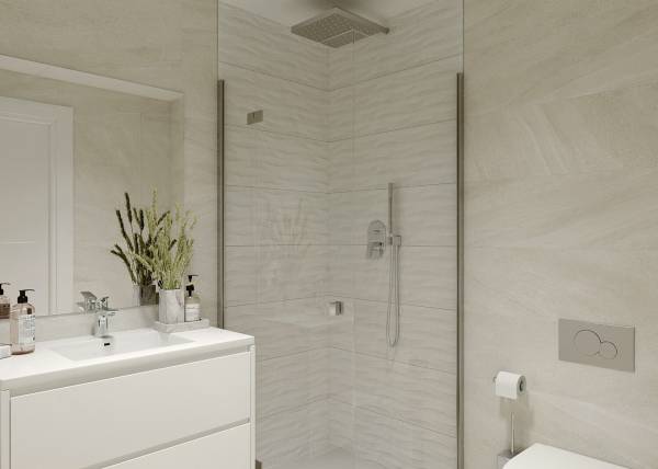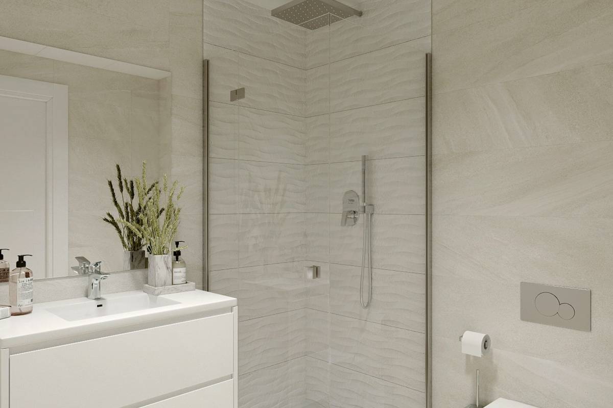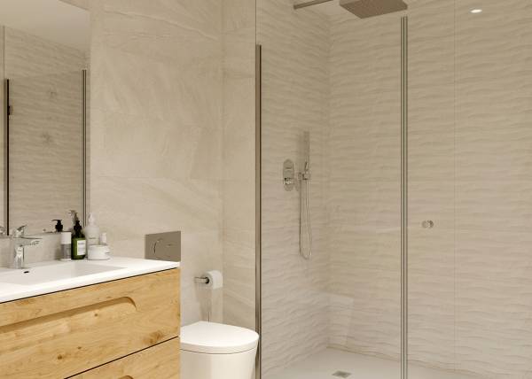 Het interieur van deze woningen is ontworpen met een focus op kwaliteit en comfort. De appartementen, begane grond en penthouses bieden opties met 2 of 3 slaapkamers en 1 of 2 badkamers, aangepast aan verschillende gezinsbehoeften. De porseleinen tegelvloeren voegen een vleugje elegantie en duurzaamheid toe, terwijl elektrische rolluiken en de video-intercom extra comfort en veiligheid bieden. Ingebouwde kasten zorgen voor efficiënte opslag, en vloerverwarming zorgt voor een warme omgeving tijdens de koudere maanden. Elk detail is doordacht om een gezellig en functioneel huis te bieden.