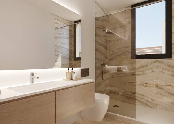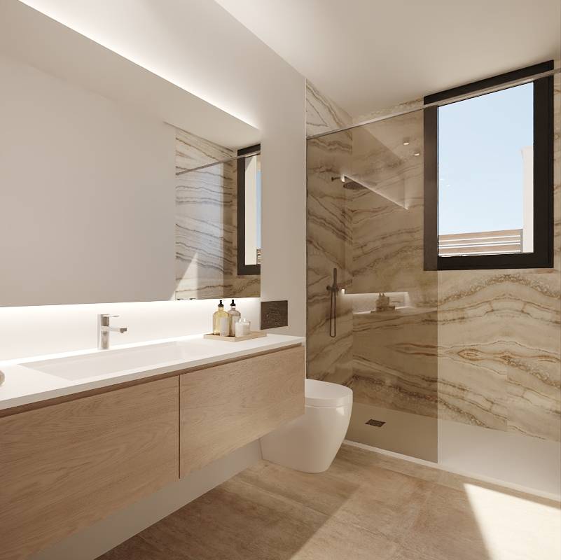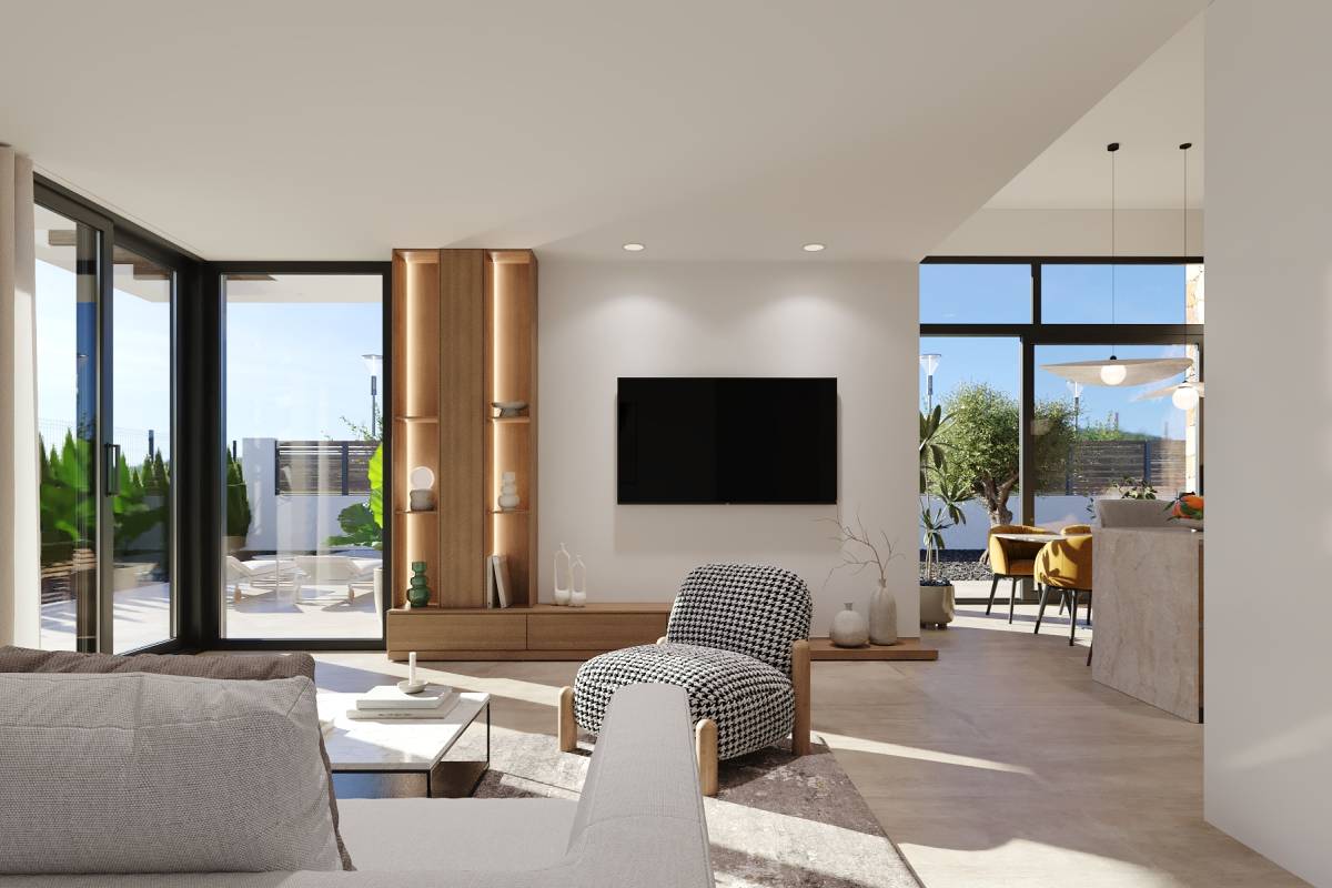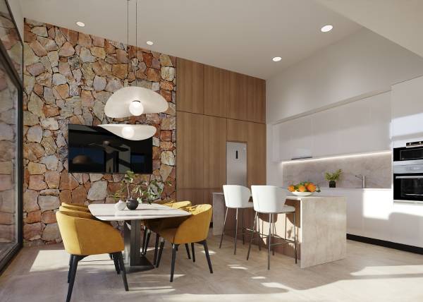 Het interieur van deze vrijstaande woningen in Fuente Álamo is ontworpen om comfort en functionaliteit te maximaliseren. Met een indeling die drie slaapkamers en twee badkamers omvat, is elke woning ontworpen om te voldoen aan de behoeften van moderne gezinnen. De ingebouwde kasten bieden veel opbergruimte, terwijl het airconditioningsysteem het hele jaar door voor een aangename sfeer zorgt. De toevoeging van een video-intercom biedt een extra niveau van veiligheid en comfort. De porseleinen tegelvloeren zijn niet alleen esthetisch aantrekkelijk, maar ook duurzaam en gemakkelijk te onderhouden, wat bijdraagt aan een elegante en praktische binnenomgeving.
