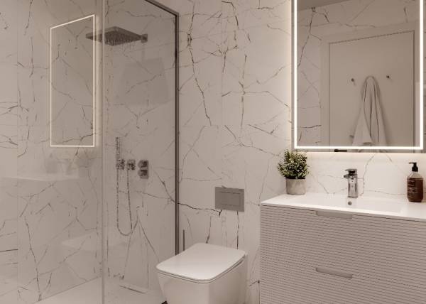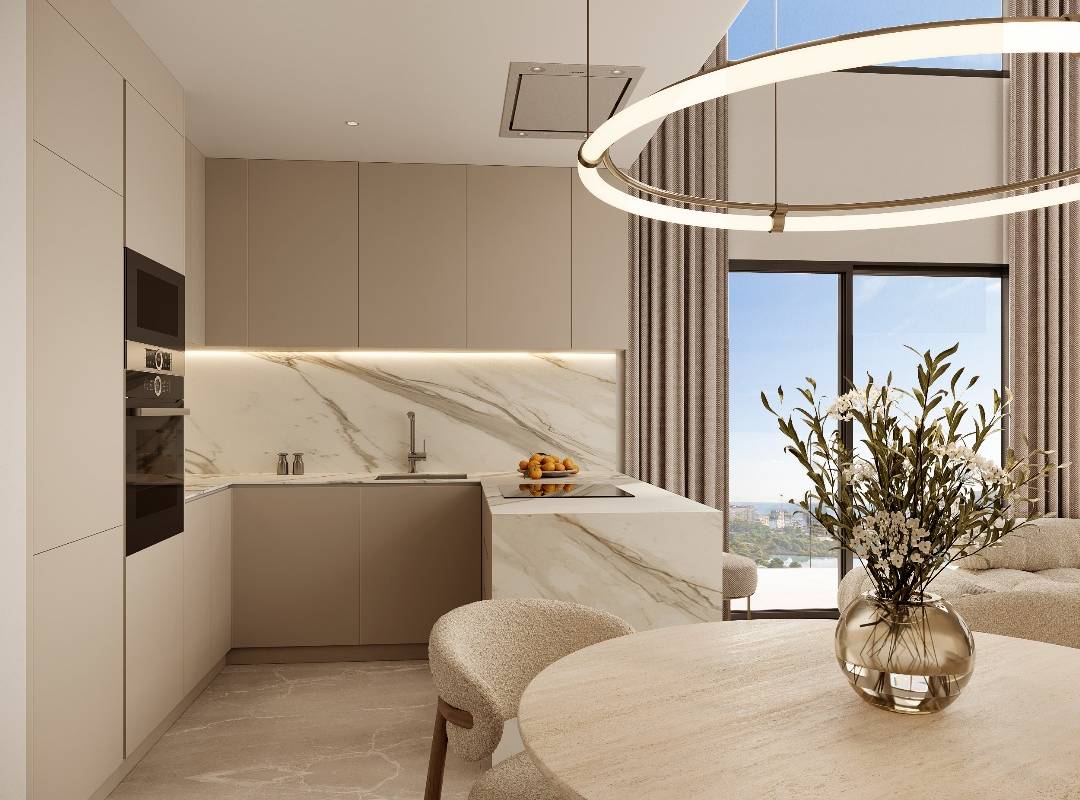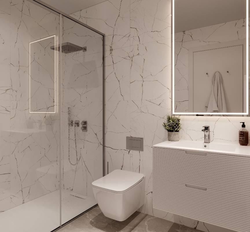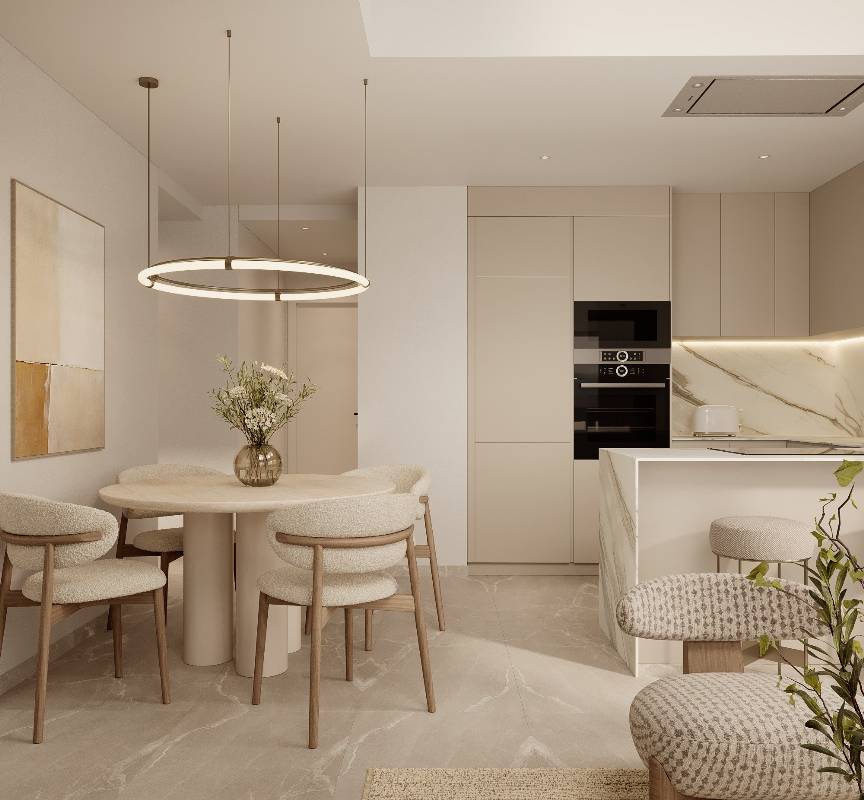 Het interieur van de woningen is ontworpen met een focus op comfort en stijl. De indelingsopties omvatten appartementen en penthouses met 2 of 3 slaapkamers, allemaal met 2 badkamers, wat ze ideaal maakt voor zowel gezinnen als koppels. De aanwezigheid van een garage zorgt voor een veilige parkeerplaats, terwijl inbouwkasten de opslagruimte optimaliseren. De integratie van domotica en moderne apparaten vergemakkelijkt een eigentijdse en efficiënte levensstijl.