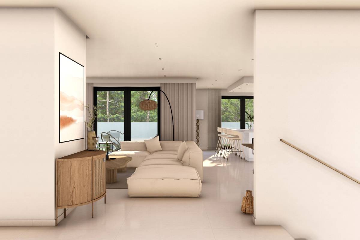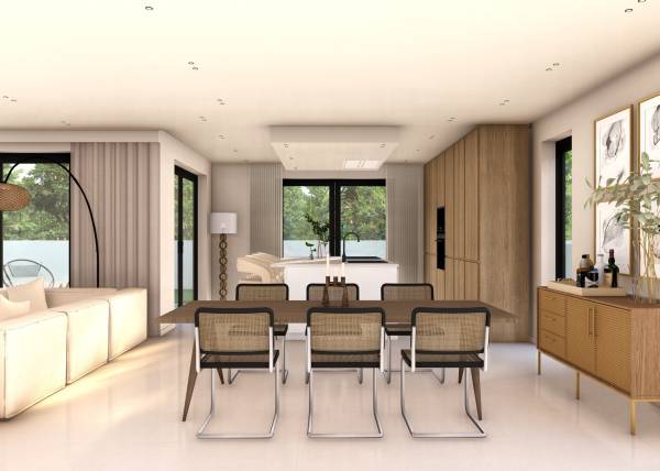 Het interieur van de woningen is ontworpen om maximaal comfort en functionaliteit te bieden. De keukens zijn uitgerust met moderne apparatuur, wat de dagelijkse taken vergemakkelijkt. Ingebouwde kasten bieden veel opbergruimte en houden de ruimtes netjes en elegant. De voorinstallatie van airconditioning zorgt ervoor dat het binnenklimaat altijd aangenaam is, terwijl de video-intercom een extra niveau van veiligheid en comfort biedt. Met 3 beschikbare badkamers kan elk gezinslid genieten van zijn eigen privéruimte.