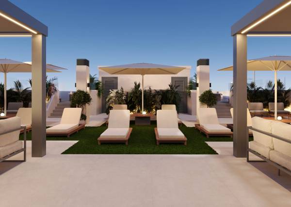 Dit residentieel in San Miguel de Salinas biedt een verscheidenheid aan gemeenschappelijke ruimtes die zijn ontworpen voor het plezier van alle bewoners. Onder de beschikbare faciliteiten bevindt zich een gemeenschappelijk zwembad, perfect om af te koelen tijdens warme zomerdagen. De tuinen bieden een groene ruimte waar bewoners kunnen ontspannen en van de natuur kunnen genieten. Voor de kleintjes is er een speeltuin, die ervoor zorgt dat kinderen een veilige en leuke plek hebben om te spelen. Bovendien biedt het gemeenschappelijk solarium een ruimte waar bewoners kunnen socialiseren en van de zon kunnen genieten in een rustige en veilige omgeving.