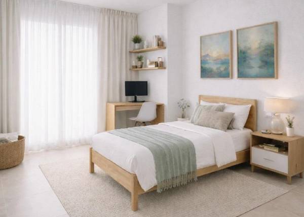 De woningen zijn uitgerust met moderne kenmerken die een hoog niveau van comfort garanderen. De vloeren van porseleinen tegels geven de binnenruimtes een vleugje elegantie en duurzaamheid. De voorinstallatie van airconditioning maakt efficiënte en gepersonaliseerde klimaatregeling mogelijk. Ingebouwde kasten bieden praktische en esthetische opbergoplossingen. Bovendien biedt de video-intercom extra veiligheid en gemak. De indeling van de eigendommen omvat opties met 1, 2 of 3 slaapkamers en 1 of 2 badkamers, aangepast aan verschillende gezinsbehoeften. De penthouses beschikken over een solarium, een exclusieve ruimte om van de zon en het uitzicht te genieten.