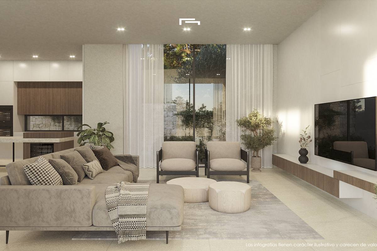 Het interieur van de villa is zorgvuldig ontworpen om maximaal comfort en functionaliteit te bieden. Met drie slaapkamers en vier badkamers is de indeling van de woning bedacht om te voldoen aan de behoeften van een modern gezin. De slaapkamers zijn voorzien van inbouwkasten, die veel opbergruimte bieden. De villa is uitgerust met airconditioning en vloerverwarming, wat het hele jaar door een aangename temperatuur garandeert. Elektrische rolluiken en een video-intercom voegen een moderne en veilige touch toe aan het huis. De keuken is uitgerust met hoogwaardige apparatuur, wat de dagelijkse taken vergemakkelijkt en bijdraagt aan een comfortabele en efficiënte levensstijl.