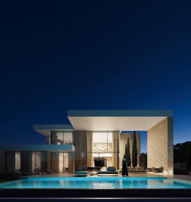Het interieur van de villa is uitgerust met hoogwaardige kenmerken die een comfortabele en moderne levensstijl garanderen. De porseleinen tegelvloer geeft de ruimtes een elegante en duurzame uitstraling. De villa is uitgerust met moderne apparatuur en een domoticasysteem dat het beheer van verschillende functies van het huis vergemakkelijkt. De klimaatregeling is verzekerd met airconditioning en vloerverwarming, wat comfort biedt in elk seizoen. Ingebouwde kasten bieden efficiënte opslag, waardoor de ruimtes georganiseerd en rommelvrij blijven. Elk van de 4 slaapkamers en 4 badkamers is ontworpen om privacy en comfort te bieden aan de bewoners.