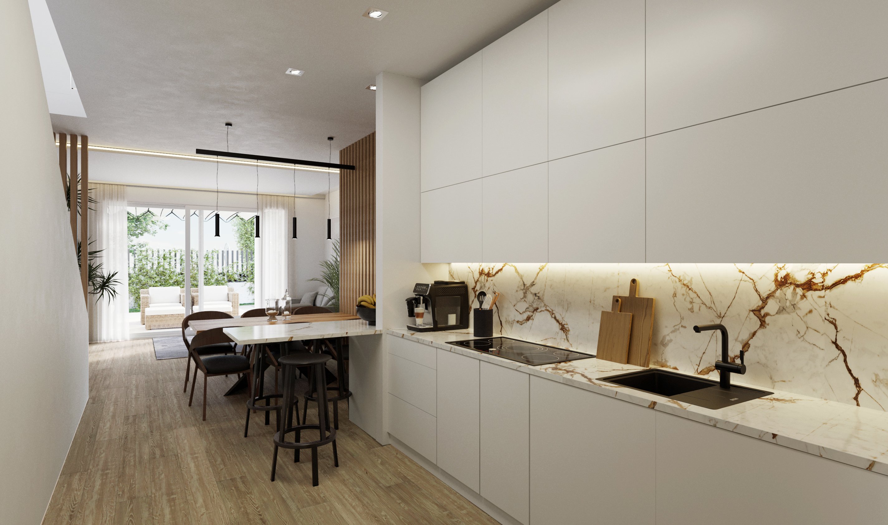 Het interieur van deze vrijstaande woningen is ontworpen om maximaal comfort en functionaliteit te bieden. Met drie slaapkamers en drie badkamers is elke woning voorbereid om aan de behoeften van gezinnen van verschillende groottes te voldoen. De keramische vloeren geven een elegante uitstraling en zijn gemakkelijk te onderhouden, terwijl de elektrische rolluiken comfort en veiligheid toevoegen. De woningen zijn volledig gemeubileerd, inclusief apparaten, wat de verhuizing vergemakkelijkt en het mogelijk maakt om vanaf de eerste dag van het nieuwe huis te genieten. Ingebouwde kasten bieden extra opbergruimte, waardoor orde en organisatie in huis behouden blijven.