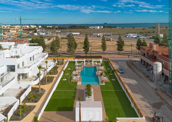 De buitenruimtes van dit wooncomplex zijn ontworpen om de natuurlijke omgeving van Los Alcázares aan te vullen. De woningen beschikken over privéterrassen, perfect om te genieten van het mediterrane klimaat en het uitzicht op de omgeving. Bovendien bieden sommige woningen de optie van een solarium, dat extra buitenruimte biedt om te ontspannen of te socialiseren. De gemeenschappelijke tuinen zijn zorgvuldig onderhouden en bieden een groene ruimte waar bewoners kunnen genieten van de rust en schoonheid van het landschap. De nabijheid van de zee, op slechts 1 km, maakt kustwandelingen en watersportactiviteiten mogelijk.