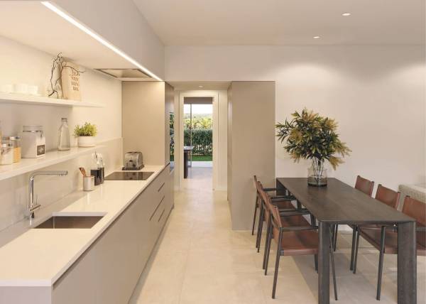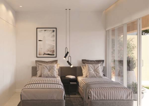 Het interieur van deze bungalows is ontworpen om comfort en functionaliteit te bieden. De ingebouwde kasten in de slaapkamers bieden veel opbergruimte en behouden orde en esthetiek. De toevoeging van een video-intercom biedt een extra niveau van veiligheid en gemak. De indeling van de woningen met 2 of 3 slaapkamers en 2 badkamers is ontworpen om te voldoen aan de behoeften van gezinnen van verschillende groottes. De voorinstallatie van airconditioning maakt het mogelijk om het hele jaar door een aangename temperatuur te behouden, terwijl de inbegrepen apparaten het dagelijks leven vanaf het eerste moment vergemakkelijken.