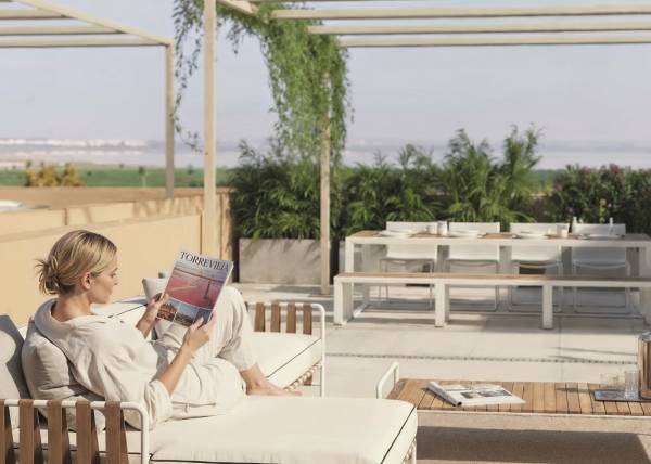 De buitenruimtes van deze bungalows in Torrevieja zijn ontworpen om optimaal te genieten van het mediterrane klimaat. Elke woning heeft een privétuin, perfect voor ontspanning of buitenactiviteiten. De ruime terrassen bieden extra ruimte om te genieten van het uitzicht en de frisse lucht. Bovendien hebben sommige bungalows een solarium, ideaal om te zonnebaden in de privacy van uw eigen huis. De locatie in Torrevieja maakt het mogelijk om te genieten van een rustige omgeving en toch dicht bij alle benodigde voorzieningen voor het dagelijks leven te zijn.