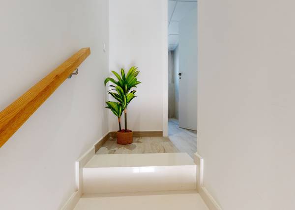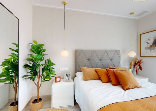 Het interieur van de woningen is ontworpen om comfort en functionaliteit te bieden. Alle eigendommen hebben drie slaapkamers en twee badkamers, wat de nodige ruimte biedt voor gezinnen van verschillende groottes. De porseleinen tegelvloeren geven een vleugje elegantie en zijn gemakkelijk te onderhouden, terwijl de elektrische rolluiken comfort en moderniteit toevoegen. De aanwezigheid van keukenapparatuur maakt het dagelijks leven vanaf dag één gemakkelijker. De airconditioning zorgt het hele jaar door voor een aangename omgeving, en de ingebouwde kasten bieden efficiënte opslagoplossingen. Elk detail is doordacht om een gezellige en praktische woning te creëren, waar design en functionaliteit samenkomen voor een superieure woonervaring.
