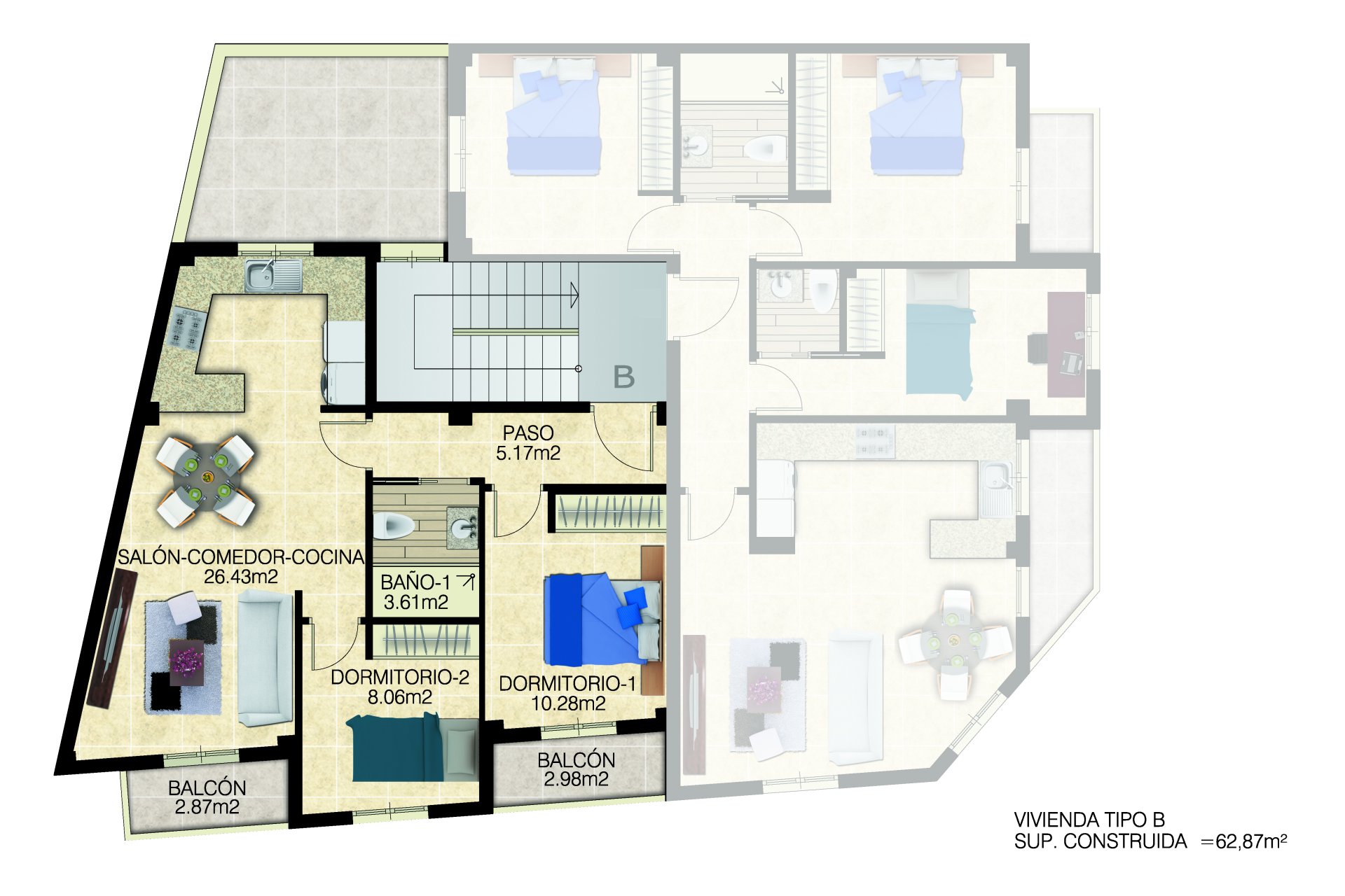 De appartementen beschikken over privéterrassen, die een buitenruimte bieden waar bewoners kunnen genieten van het mediterrane klimaat. Deze ruimte is perfect om te ontspannen, buiten te eten of gewoon te genieten van het uitzicht op de omgeving. De aanwezigheid van een gemeenschappelijk dakterras voegt extra waarde toe, door een plek te bieden waar bewoners kunnen socialiseren of van de zon kunnen genieten in een ruimere en gedeelde omgeving.