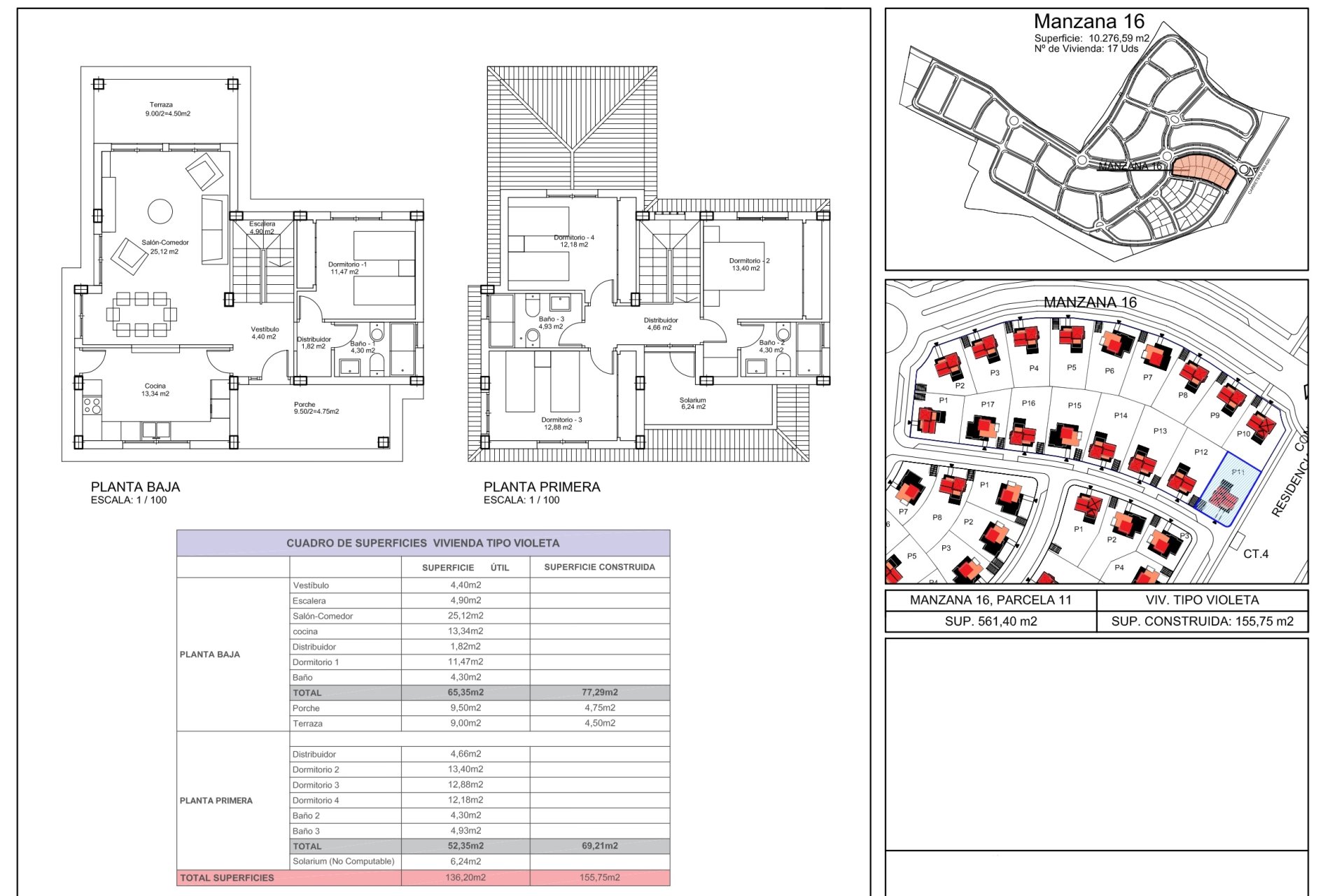 Binnen onderscheiden de woningen zich door hun porseleinen tegelvloeren, die esthetiek en duurzaamheid combineren. De indeling is ontworpen om comfort en functionaliteit te maximaliseren, met goed gedefinieerde ruimtes die het dagelijks leven vergemakkelijken. De opties van 3 of 4 slaapkamers en 2 of 3 badkamers maken het mogelijk om de configuratie te kiezen die het beste bij de gezinsbehoeften past. De pre-installatie van airconditioning en ingebouwde kasten zijn details die extra waarde toevoegen, waardoor deze woningen een comfortabele en praktische plek zijn om te wonen.
