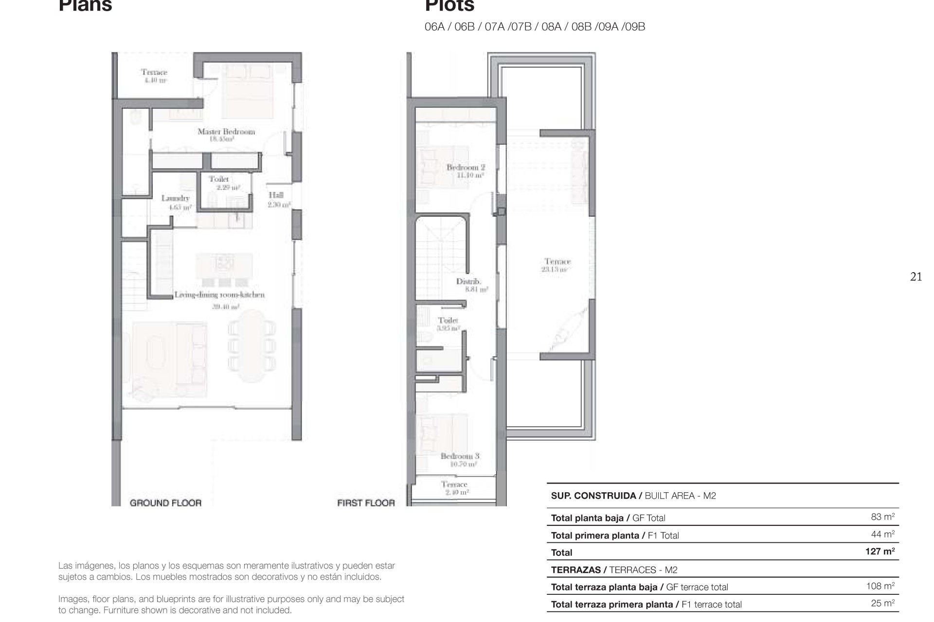 Het interieur van de woningen is ontworpen om een gezellige en moderne sfeer te bieden. Elke woning beschikt over drie slaapkamers en drie badkamers, wat een ruime en functionele ruimte biedt voor het hele gezin. De hoogwaardige afwerkingen omvatten porseleinen vloertegels, die een elegante uitstraling geven en gemakkelijk te onderhouden zijn. De woningen zijn volledig gemeubileerd en uitgerust met apparaten, wat ervoor zorgt dat elk detail zorgvuldig is uitgewerkt voor maximaal comfort. Technologie speelt ook een belangrijke rol, met functies zoals domotica, airconditioning, vloerverwarming, video-intercom en elektrische rolluiken, die een moderne en efficiënte levensstijl garanderen. Ingebouwde kasten bieden praktische en elegante opbergoplossingen, die een interieurontwerp voltooien dat functionaliteit en stijl combineert.